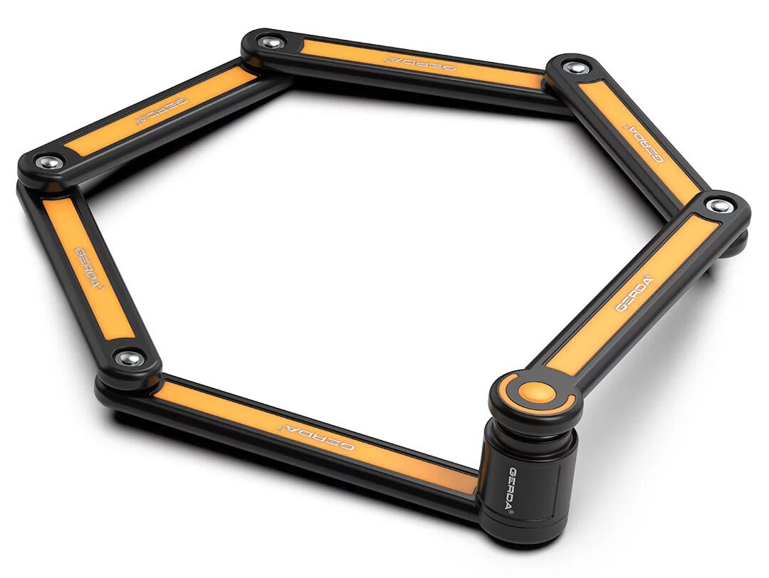 Велозамок GERDA FOLD 840V yellow FOLD 840V — складаний замок для велосипеда/скутера/мотоциклу. Довжина пристрою 84 см забезпечує ідеальний комфорт пристібання вдома та в подорожі. Виготовляється із шести сталевих панелей завтовшки 8 мм на міцних сполуках, що забезпечує високий рівень безпеки. Велозамок FOLD 840V покритий чохлом із ПВХ, який захищає велосипед від подряпин. До комплекту входить зручний симетричний ключ. Таке технологічне рішення дає змогу легко відкрити замок у будь-якому положенні, забезпечуючи комфорт використання навіть у темряві. ОСОБЛИВОСТІ ВЕЛОСИПЕДНОГО ЗАМКА GERDA FOLD 840V: Довжина 84 см забезпечує комфорт використання. Шість сталевих панелей 8 мм на міцних сполуках. Чохол із ПВХ захищає велосипед від подряпин. Дуже малий розмір у складеному вигляді. Зручний симетричний ключ, простий у використанні навіть у темряві. Замикання ключем. Транспортний кейс, що кріпиться стрічками або шурупами до рами на місце пляшки з водою. Компанія GERDA (Герда) була заснована в 1987 році як підприємство з виробництва замкових пристроїв і систем безпеки найвищої якості та рівня захисту. Курс був обраний на завоювання вимогливого європейського ринку та на відповідність усім найвищим стандартам і вимогам щодо забезпечення найнадійнішої безпеки. На сьогодні продукція компанії Gerda постачається у понад 50 країн усього світу.