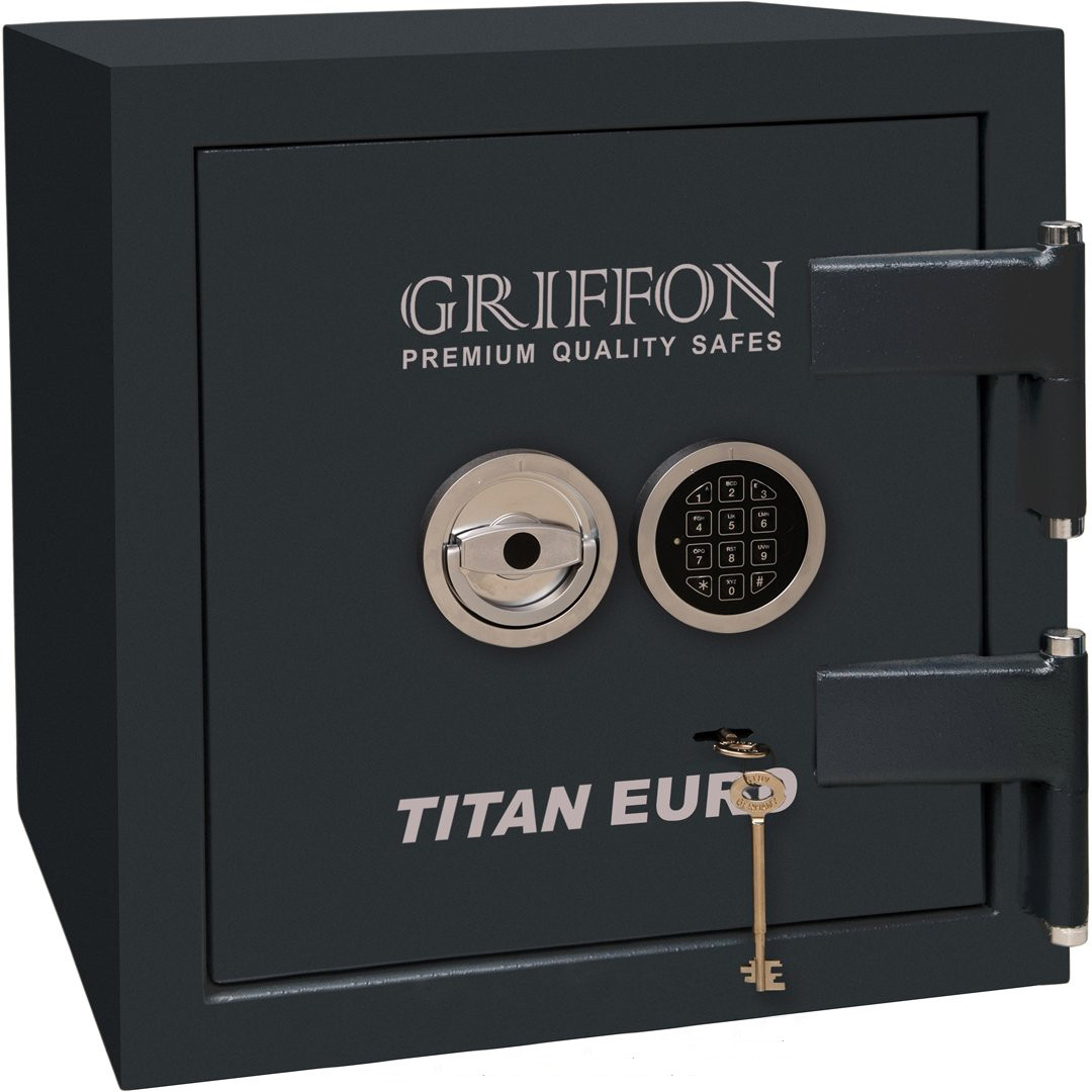 Вогнезламостійкий сейф GRIFFON CLE.II.50.КЕ Сертифікований вогнезламостійкий сейф GRIFFON CLE II.50.КЕ призначений для зберігання і захисту грошей, ювелірних прикрас, цінних паперів, документів, цінностей, особистої вогнепальної і холодної збр-ї від пожежі та несанкціонованого доступу (злому). Габаритна глибина сейфа з урахуванням ручки – 520 мм Висока ступінь безпеки – Grade II в системі ECB-S (Німеччина). Двері сейфа обладнані потужною ригельною системою замикання чотиристоронньої дії. Надійний ригельний механізм, блокуючий двері, оснащений хромованими активними ригелями діаметром 25 мм, що діють у вертикальному та горизонтальному напрямках. Обладнаний нерухомими ригелями, що виключають можливість відкривання дверей сейфа при зрізаних петлях. Конструкція ригеля системи виключає розтин сейфа шляхом силової дії на ручку. В цілях збільшення надійності сейфа проти злому, місця кріплення замків захищені потужними розжареними пластинами з легованої стали. Одна полиця (дві зони зберігання). Гарантія на сейф 5 років, на замок 1 рік. Зовнішні петлі, що дозволяють відчиняти двері на 180 °, не перекриваючи дверний отвір. Передбачено два варіанти кріплення сейфа до підлоги: або за допомогою анкерних болтів до підлоги (через два монтажні отвори), або за допомогою спеціального кронштейна (8 монтажних отворів). Монтажний комплект для кріплення сейфа за допомогою кронштейна замовляється окремо. Обладнаний ключовим замком STUV та електронним кодовим замком M-LOCKS. Сейф сертифікований відповідно до стандартів EN 1143-1 та EN 15659 (Сертифікат) Зовнішні розміри (ВхШхГ), мм: 506x460x480 Внутрішні розміри (ВхШхГ), мм: 390x350x312 Вага, кг: 210 Кількість полиць: 1 шт, знімна Тип замка: Сертифікований ключовий замок STUV та електронний кодовий замок M-LOCKS Тип покриття: Емаль Гарантія: 5 років Виробник, країна: Паритет-К (Україна) Компанія «Паритет-К» – лідер ринку України з виробництва та продажу сейфів та засобів для безпечного зберігання цінностей. З 1992 року компанія виробляє продукцію найвищої якості для потреб європейського та українського споживача. Якість продукції відповідає високим міжнародним стандартам ISO 9001 Компанія «Паритет-К» – єдиний в Україні серед виробників сейфів та засобів для безпечного зберігання член Асоціації Європейських Систем Безпеки ESSA. Виробництво та постачання єдиної продукції для ринку Європи та України Продукція проходить сертифікаційні випробування у Європі. Сертифікація продукції відбувається згідно з європейськими стандартами EN 1143-1, EN 14450, EN 15659 У виробництві застосовуються передові технічні та конструкторські рішення власним конструкторським бюро «Паритет-К» має унікальні запатентовані розробки у виробництві сейфів та спорудженні банківських сховищ