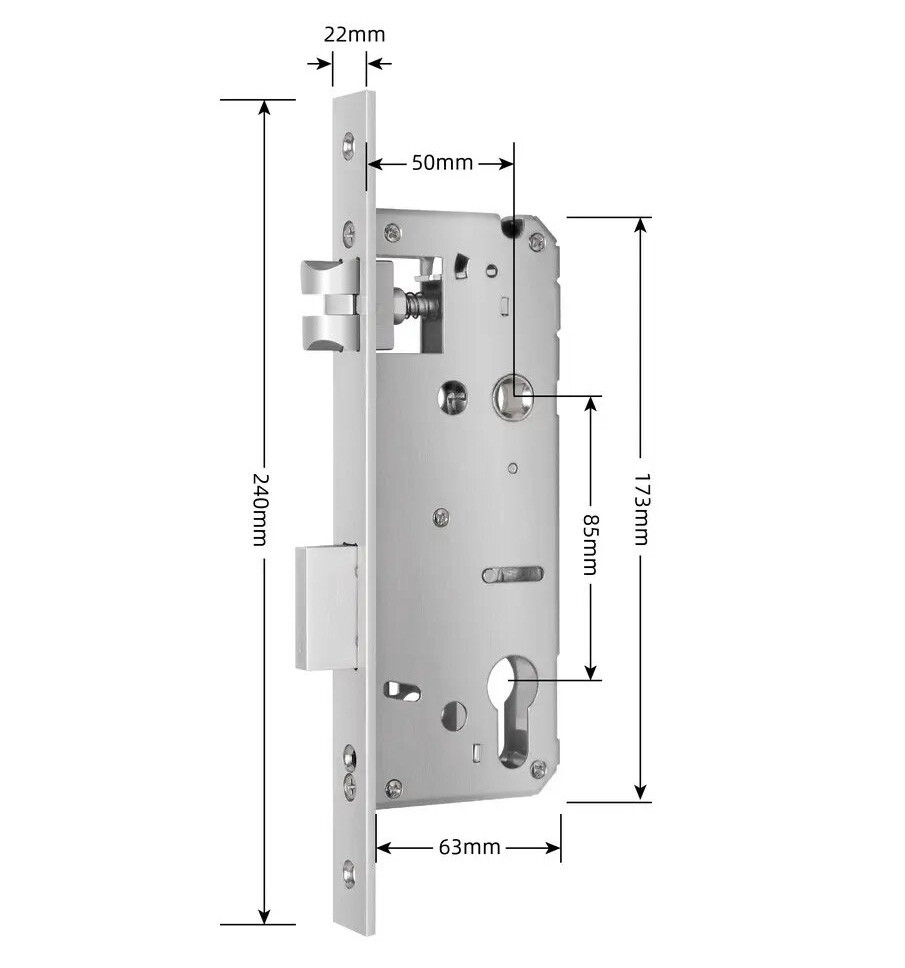 Врізна частина замка Seven Lock 5085 Seven Lock 5085 – врізна частина для розумних дверних замків. Призначена для встановлення на зовнішні двері квартир, під’їздів, гаражів, ангорів та інших приміщень. Розміри замка — Вх240 мм Гх63 мм Шх22 мм. Backset 50 мм. Компанія SEVEN Systems упродовж 5 років займає лідерські позиції на ринку обладнання за системами контролю доступу, а зокрема за автономними рішеннями. Щорічно є учасниками в профільових виставках, як-от Expert Security та IntrererBuildExpo.