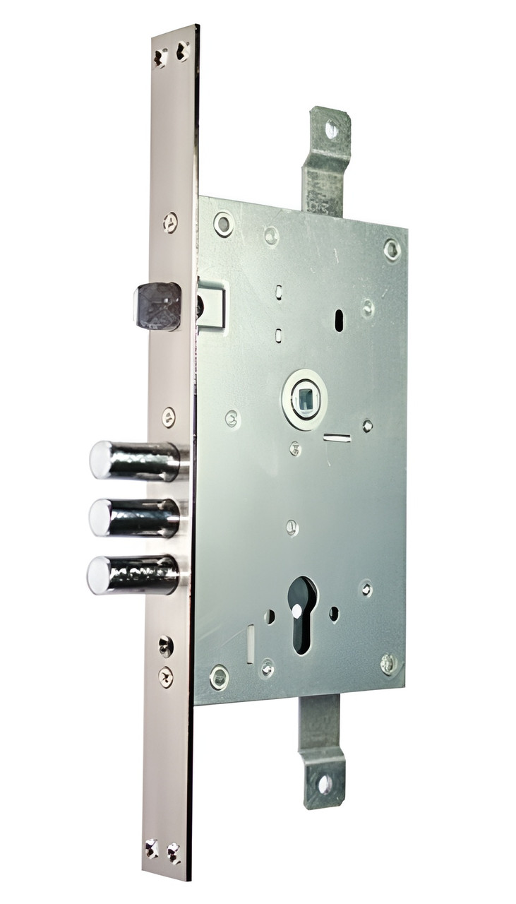 Корпус врізного основного замка CLASS 352RL (ан. KALE 352) Врізний циліндровий замок CLASS 352RL з тягами призначений для встановлення на сталеві двері. Замок оснащений трьома потужними циліндричними ригелями діаметром 16 мм з вильотом 34,5 мм та реверсивною клямкою, керованою як циліндровим механізмом (серцевиною), так і ручкою. Корпус виготовлений з пофарбованої сталі, ригелі виконані з хромованої сталі. Замок відноситься до 4 класу безпеки і забезпечує високий рівень захисту вхідних дверей. Для роботи потрібен циліндровий механізм (у комплект не входить). Завдяки наявності виходів для тяг модель може використовуватися в багатозапірних системах. Торцева планка нікельована. Замок сумісний за конструкцією із замками серії KALE 352. Для роботи замка використовується циліндровий механізм (серцевина), який підбирається окремо. ТЕХНІЧНІ ХАРАКТЕРИСТИКИ Тип механізму: циліндровий Тип замка: врізний Тип клямки: реверсивна Кількість ригелів: 3 шт. Виліт ригеля: 34,5 мм Діаметр ригеля: 16 мм Клас безпеки: 4 (вищий) Кількість ключів: залежить від встановленого циліндра (у комплекті немає) Наявність виходів для тяг: є Лицева планка: у комплекті Габаритні розміри: 210 × 130 × 19,5 мм Backset: 65 мм Міжосьова відстань: 85 мм Матеріал корпусу: пофарбована сталь Матеріал ригелів: хромована сталь Країна виробник: Китай CLASS — це надійний китайський виробник замків та фурнітури для побутового і господарського використання. В асортименті бренду — навісні, врізні та накладні замки, механізми різної форми та ступеня захисту. Продукція CLASS виготовляється з міцних матеріалів (чавун, сталь, латунь) і орієнтована на практичне застосування: склади, ворота, кладові, шафи та приміщення загального користування. Замки відрізняються простою конструкцією, стабільною якістю та доступною ціною. Бренд представлений на ринку понад 10 років і активно використовується в країнах Східної Європи та Азії.