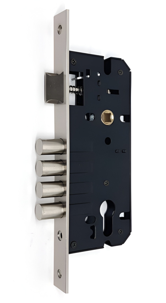 Корпус врізного основного замка CLASS 8913 SN сатин нікель Врізний замок CLASS 8913 SN призначений для встановлення на вхідні двері, найчастіше дерев’яні вхідні двері квартир або двері офісних приміщень. Також може встановлюватися на металеві двері за умови, що дверне полотно не масивне та має товщину до 50 мм. Замок оснащений реверсивним язичком, що дозволяє встановлювати його як на праві, так і на ліві двері без розбору механізму. При зачиненні висуваються три круглі сталеві ригелі діаметром 12 мм із виходом 20 мм, що забезпечує надійний захист. Корпус замка виконаний із міцної сталі, торцева планка має покриття SN (сатин нікель). Механізм сумісний із замками серії KALE 2000. Для роботи замка потрібен циліндровий механізм (серцевина), у комплект не входить. ТЕХНІЧНІ ХАРАКТЕРИСТИКИ Тип товару: врізний замок Модель: CLASS 8913 SN Виробник: CLASS (Китай) Призначення: для вхідних дверей / хвірток Матеріал дверей: металеві / дерев’яні (товщина полотна до 50 мм) Спосіб монтажу: врізний Місце монтажу: нижній (основний) Міжосьова відстань: 85 мм Backset: 45 мм Спосіб фіксації: сталевий язичок із гальванічним покриттям Язичок: реверсивний — підходить для правих і лівих дверей Кількість ригелів: 3 круглі сталеві ригелі Діаметр ригелів: 12 мм Вихід ригелів: 20 мм Механізм зачинення: циліндровий (серцевина) Оздоблення торцевої планки: SN (сатин нікель / срібло) Сумісність: взаємозамінний із замками серії KALE 2000 CLASS — це надійний китайський виробник замків та фурнітури для побутового і господарського використання. В асортименті бренду — навісні, врізні та накладні замки, механізми різної форми та ступеня захисту. Продукція CLASS виготовляється з міцних матеріалів (чавун, сталь, латунь) і орієнтована на практичне застосування: склади, ворота, комори, шафи та приміщення загального користування. Замки відрізняються простою конструкцією, стабільною якістю та доступною ціною. Бренд представлений на ринку понад 10 років і активно використовується в країнах Східної Європи та Азії.