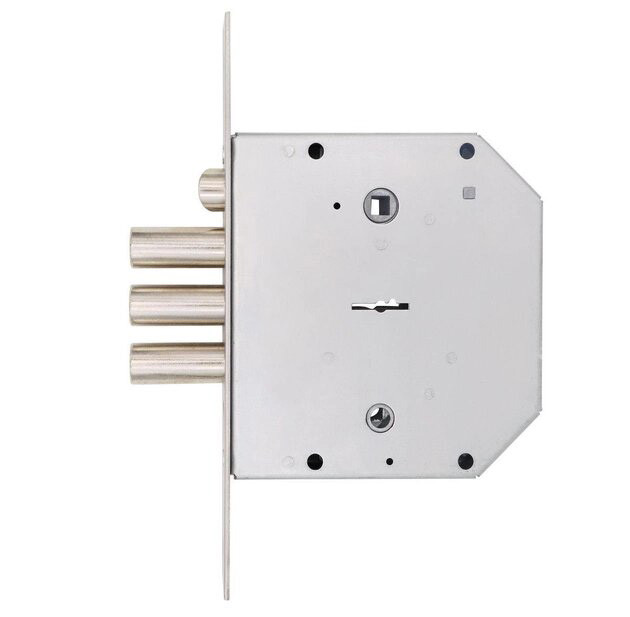 Основний дверний замок Шерлок 06.41-K65 5 ключів Шерлок 06.41-K65 – правосторонній замок сувальдного типу для масивних металічних, броньованих і гаражних дверей. Виготовлений із високоякісної сталі. Три сталевих загартованих ригеля з виходом 40 мм надійно захищають від взлому. Засувка для замикання зсередини приміщення. ТЕХНІЧНІ ХАРАКТЕРИСТИКИ Кількість ригелів – 3. Діаметр ригелю – 18 мм. Вихід ригелю – 40 мм Кількість ключів – 5 шт. Backset – 66.5 мм. Ширина – 136 мм. Міжосьова відстань – 42 мм. Матеріал замка – сталь. Призначення замка – основне. КОМПЛЕКТАЦІЯ Замок. Комплект ключів 5 шт. Упаковка. Виробник дверної фурнітури Шерлок – команда професіоналів у замковому бізнесі, працює на ринку замкової продукції з 1994 року. Вся продукція сертифікована, із заводською гарантією. Компанія докладає великих зусиль для виробництва якісних продуктів, які тестує у своїй власній лабораторії та покращує якість та рівень захисту. Основний принцип роботи компанії – це якісний продукт за найкращою ціною. Зробивши вибір на користь дверних циліндрів Шерлок, клієнт гарантовано отримує якісний товар з довгим терміном експлуатації.