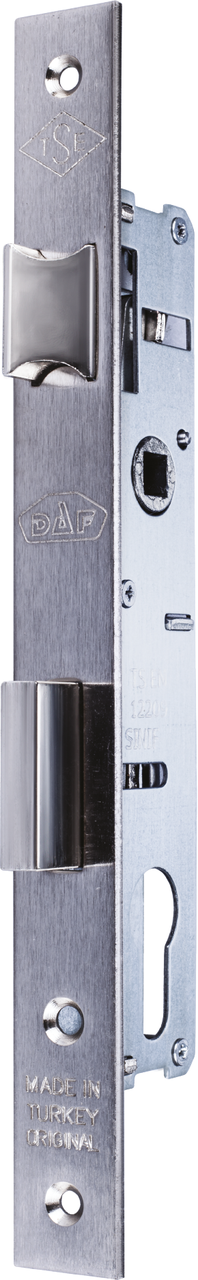 Врізний основний вузькопрофільний замок DAF 511-25-CRX (без циліндра), хром DAF Kilit 511-25-CRX — це компактний врізний вузькопрофільний замок, призначений для встановлення на алюмінієві двері, хвіртки, офісні та складські приміщення. Замок встановлюється з циліндровим механізмом типу EURO DIN і ручкою з міжосьовою відстанню 85 мм (овальна або на планці). Корпус замка виготовлений із міцної сталі з хромованим покриттям, стійким до корозії та зносу. Язичок замка реверсивний — замок підходить як для правих, так і для лівих дверей. Міжосьова відстань — 85 мм, бексет — 25 мм, ширина планки — 23 мм. Модель повністю сумісна із замками Kale 153 U-20, Santos 726, Class 153-20 — не потребує доопрацювання дверного полотна при заміні. ТЕХНІЧНІ ХАРАКТЕРИСТИКИ: Тип: врізний Тип механізму: циліндровий Призначення: алюмінієві двері, хвіртки, офісні та складські приміщення Тип управління: циліндр EURO DIN Backset (відступ ключового отвору): 25 мм Міжосьова відстань: 85 мм Ширина планки: 23 мм Кількість ригелів: 1 Тип ригелів: прямокутний Виліт ригеля: 14 мм Сумісність: Kale 153 U-20, Santos 726, Class 153-20 Країна виробник: Туреччина DAF Kilit — турецький бренд замків і систем безпеки, заснований у 1999 році зі штаб-квартирою в Стамбулі. Компанія виробляє циліндрові та врізні замки, електрозамки, моделі для аварійних виходів та інші рішення для безпеки дверей. Продукція виготовляється на власному заводі площею понад 14 000 м², постачається на внутрішній та міжнародний ринки й вирізняється високою надійністю, на яку надається гарантія до 7 років.