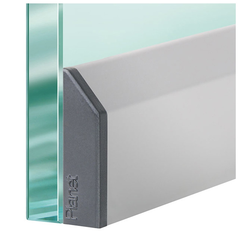 Висувний поріг PLANET KG-SM-Set 11,5x38mm/16mm 48 db 960 мм скляний • Модель: KG-SM-Set • Розмір ущільнювача: 11,5x38mm/16mm • Звукопоглинання: 48 db • Ширина ущільнювача: 960 мм Поріг висувний для скляних дверей, розташованих у приміщеннях з рівною поверхнею підлоги. Тихе, рівномірне паралельне опускання з автоматичною компенсацією нахилу підлоги. Можливе використання на дерев’яних, металевих і профільних дверях. Перешкоджає проникненню звуку, світла, протягу, сприяє енергозбереженню і дотриманню конфіденційності. Є димозахисним, але не є протипожежним. Поріг серії KG-SM-Set спеціально для накладної установки на суцільноскляні двері. В набір з самоклеючими алюмінієвими стрічками для швидкого і гарного монтажу. Глибина опускання – до 16 мм. Технічні характеристики: Сторонность – універсальна. Висота – 38 мм. Товщина – 11,5 мм Довжина – 960 мм. Зменшення довжини в межах 125 мм. Для дверних полотен шириною від 835 мм до 960 мм Акустична ізоляція до 48 дБ при оптимальному ущільненні. Тихе опускання. Просте регулювання висоти підйому. Високоякісний силіконовий самозатухаючий протипожежний ущільнювач. Кріплення, клей і ключ для регулювання входить в комплект. Для монтажу на розсувні двері замовляти з опцією: для розсувних дверей 900908. Для використання на нерівних підлогах замовляти з опцією: ущільнювач для нерівних підлог 900893 (вказувати сторонность дверей). Корпус з нержавіючої сталі – замовляти з опцією: нержавіюча сталь 900906. Компанія Planet GDZ AG заснована в Швейцарії в 1945 році. Все почалося в столярній майстерні Ст. яггі (harry yeaggy) і сини (W. Jaggi und Söhne) в Цюріху (Швейцарія). Протягом усієї своєї історії Planet займається виготовленням автоматичних ущільнювачів і порогів для герметизації дверей. Компанія широко відома своїми інноваційними розробками. Переваги герметичних дверей оцінили вже більше мільйона європейців. Автоматичні ущільнювачі і пороги Planet призначені для герметизації дверей. Використання цих комплектуючих виробів в конструкції двері різко знижує рівень зовнішнього шуму (до 50dB), спеціальні моделі ущільнювачів здатні забезпечити вогне- та димозахисту приміщень.