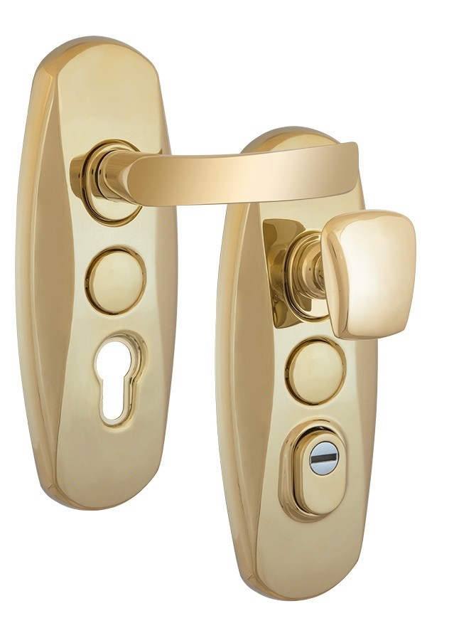 MUL-T-LOCK PLATINUM SH300 fix-mov DIN PLATE 85/90 мм латунь полірована 3 клас GOLD Platinum Комплект Технічні характеристики: • Специфікація фурнітури: SH300 • Модель фурнітури: PLATINUM • Міжосьова відстань: 85/90 мм • Обробка фурнітури: латунь полірована • Клас взломостойкості: 3 клас • Модель ручки: Platinum Фурнітура захисна SH300 / PLATINUM до замків MUL-T-LOCK M265, 267, 603, MPL212, MPL214 для вхідних металевих дверей товщиною 50-55 мм з можливістю продовження до 95 мм (комплекти подовження замовляються окремо). З-й клас безпеки. Матеріал: сталь. Плата, що захищає корпус замка. Загартований протектор циліндра із захистом від висвердлювання. У комплекті йде мінлива вставка для регулювання міжосьової відстані. Обробка – латунь полірована, має золотисто-жовтий колір натуральної латуні та лаковану поверхню. Найкраще виглядає на темних дверях, підходить до інтер’єрів у класичному стилі. Mul-T-Lock – це ізраїльська компанія, що є одним із лідерів у світі замкових технологій. Створена у 1973 році та входить до групи “ASSA ABLOY”. Mul-T-Lock впевнено йде в ногу зі світовим технічним прогресом. Висока секретність личинок замків; Максимальна точність виготовлення складових частин; Можливості сервісного обслуговування:виготовлення додаткових ключів, систем 3 in 1 «Світлофор» та «VIP», об’єднання циліндрів та замків в систему «Один ключ» та «Майстер-ключ», маркування ключів; Розгалужена мережа сервісних центрів.