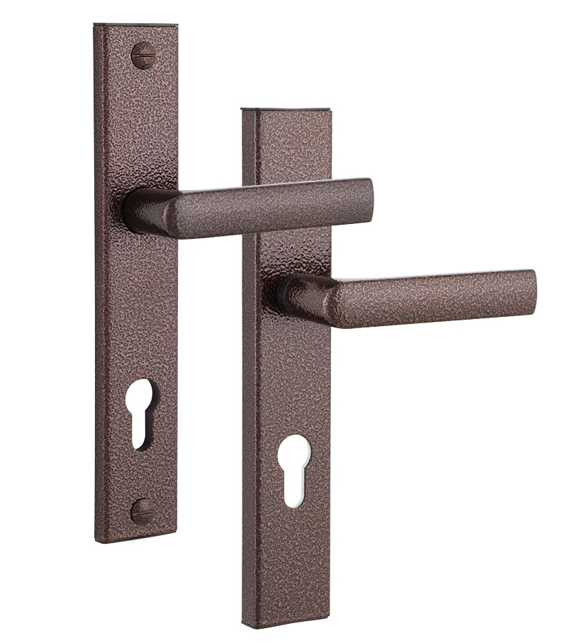ROSTEX 807 R mov-mov PZ PLATE 72 мм коричневий антик 38-55 мм 3 клас Hranate/804 BROWN Технічні характеристики: • Специфікація фурнітури: R • Модель фурнітури: 807 • Міжосьова відстань: 72 мм • Обробка фурнітури: коричневий антик • Клас взломостойкості: 3 клас • Модель ручки: 804 Фурнітура захисна ROSTEX 807 для основних замків для вхідних металевих, дерев’яних та профільних дверей товщиною 38-55 мм з можливістю продовження до 100 мм (комплекти подовження замовляються окремо). З-й клас безпеки. Матеріал: нержавіюча сталь. Плата, що захищає корпус замка. Кріплення – болти М8. Обробка – фарба коричнева антик. Червоно-коричневий темний колір з текстурою, відома також під назвою «молоткова покраска». Застосовують у випадках, коли віддається перевагу практичному покриттю без особливих вимог до дизайну. ROSTEX – чеська компанія, яка була заснована в 1925 році в місті Вишків. Основна перевага фурнітури ROSTEX полягає в тому, що з допомогою стяжних гвинтів» і броненакладки на зовнішній частині, фурнітура захищає корпус і секретну частину замка від злому. Фурнітура виготовляється з високоякісного металу, який зберігає високі експлуатаційні характеристики протягом довгих років навіть при жорстких умовах експлуатації.