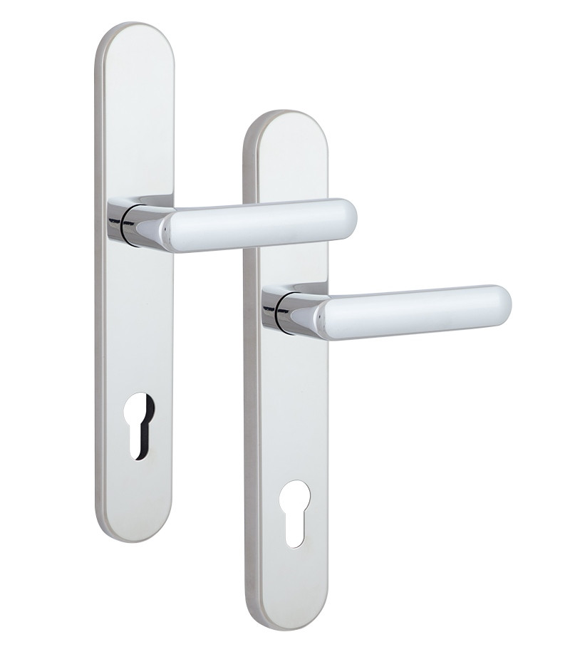 ROSTEX 807 RX mov-mov PZ PLATE 90 мм хром полірований 40-45 мм 3 клас Exlcusive CR Технічні характеристики: • Специфікація фурнітури: RХ • Модель фурнітури: 807 • Міжосьова відстань: 90 мм • Обробка фурнітури: хром полірований • Клас взломостойкості: 3 клас • Модель ручки: Exclusive Фурнітура захисна ROSTEX RX 807 для основних замків для вхідних металевих і дерев’яних дверей товщиною 40-50 мм з можливістю продовження до 100 мм (комплекти подовження замовляються окремо). З-й клас безпеки. Матеріал: нержавіюча сталь. Плата, що захищає корпус замка. Кріплення – болти М8. Обробка – хром полірований. Одна з найпоширеніших і стійких обробок. Має поліровану дзеркальну поверхню сріблястого кольору. Добре виглядає як на темних, так і світлих дверях всіх кольорів. Підходить до всіх стилів інтер’єрів. ROSTEX – чеська компанія, яка була заснована в 1925 році в місті Вишків. Основна перевага фурнітури ROSTEX полягає в тому, що з допомогою стяжних гвинтів» і броненакладки на зовнішній частині, фурнітура захищає корпус і секретну частину замка від злому. Фурнітура виготовляється з високоякісного металу, який зберігає високі експлуатаційні характеристики протягом довгих років навіть при жорстких умовах експлуатації.
