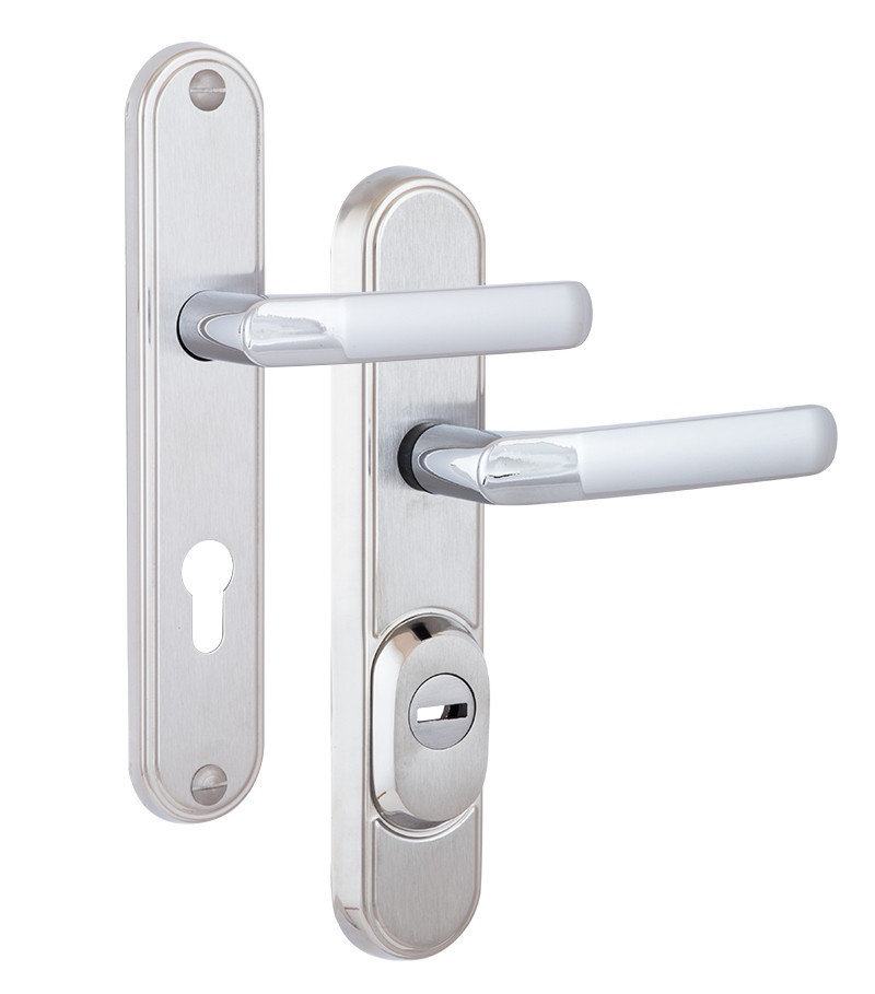 ROSTEX DECOR R mov-mov 90 мм хром матовий 23 мм 38-45 мм 4 клас Baryt Технічні характеристики: • Специфікація фурнітури: R • Модель фурнітури: DECOR • Міжосьова відстань: 90 мм • Обробка фурнітури: хром матовий • Клас зламостійкості: 4 клас • Модель ручки: Baryt Фурнітура захисна ROSTEX R4 DECOR для основних замків для вхідних металевих і дерев’яних дверей товщиною 38-45 мм з можливістю продовження до 100 мм (комплекти подовження замовляються окремо). 4-й клас безпеки. Матеріал: нержавіюча сталь. Плата, що захищає корпус замка. Загартований протектор циліндра із захистом від висвердлювання. Кріплення – болти М8. Додатковий болт кріплення М6. Обробка – хром матовий. Має матову поверхню, оброблену щіткою, сріблясто-сірого кольору. Краще виглядає на дверях червонуватих відтінків – від світлого кремового до темно-коричневого шоколадного. Для інтер’єрів у сучасних та класичних стилях. ROSTEX – чеська компанія, яка була заснована в 1925 році в місті Вишків. Основна перевага фурнітури ROSTEX полягає в тому, що з допомогою стяжних гвинтів» і броненакладки на зовнішній частині, фурнітура захищає корпус і секретну частину замка від злому. Фурнітура виготовляється з високоякісного металу, який зберігає високі експлуатаційні характеристики протягом довгих років навіть при жорстких умовах експлуатації.