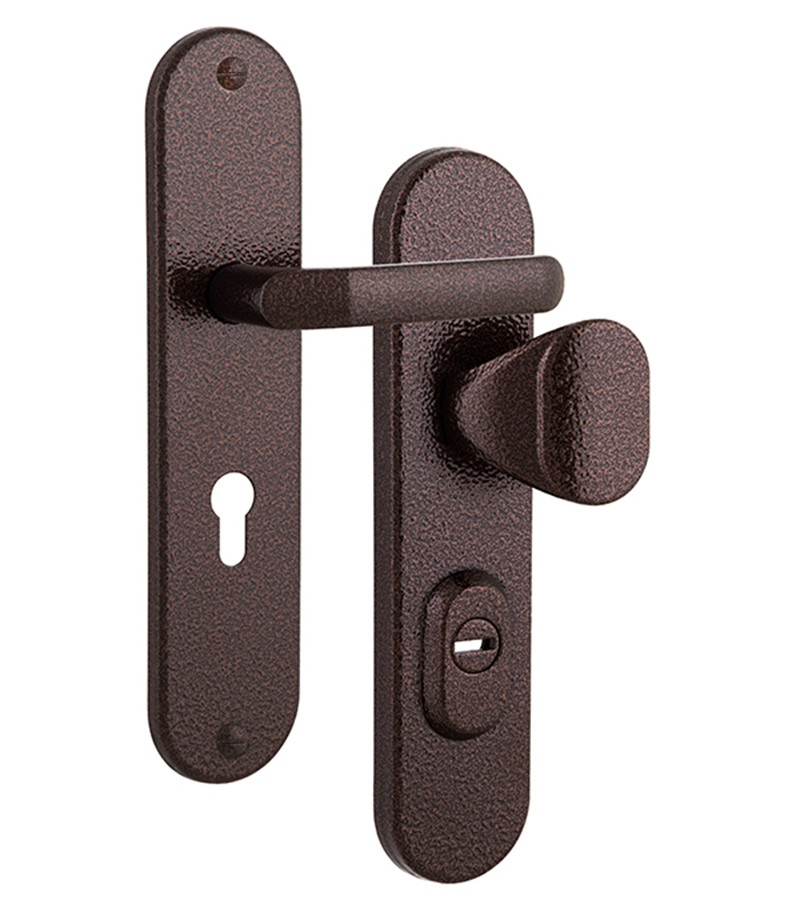 ROSTEX UNIVERSAL R fix-mov 85 мм коричневий антик 22 мм 38-55 мм 3 клас Ovalne/Baryt Технічні характеристики: • Специфікація фурнітури: R • Модель фурнітури: UNIVERSAL • Міжосьова відстань: 85 мм • Обробка фурнітури: коричневий антик • Клас зламостійкості: 3 клас • Модель ручки: Ovalne/Baryt Фурнітура захисна ROSTEX R1 UNIVERSAL до основних замків для вхідних металевих, дерев’яних та профільних дверей товщиною 38-55 мм з можливістю продовження до 100 мм (комплекти подовження замовляються окремо). З-й клас безпеки. Матеріал: нержавіюча сталь. Плата, що захищає корпус замка. Загартований протектор циліндра із захистом від висвердлювання. Кріплення – болти М8. Збільшена відстань між болтами кріплення. Обробка фарба коричнева антик. Червоно-коричневий темний колір з текстурою, відома також під назвою «молоткова покраска». Застосовують у випадках, коли віддається перевага практичному покриттю без особливих вимог до дизайну. ROSTEX – чеська компанія, яка була заснована в 1925 році в місті Вишків. Основна перевага фурнітури ROSTEX полягає в тому, що з допомогою стяжних гвинтів» і броненакладки на зовнішній частині, фурнітура захищає корпус і секретну частину замка від злому. Фурнітура виготовляється з високоякісного металу, який зберігає високі експлуатаційні характеристики протягом довгих років навіть при жорстких умовах експлуатації.