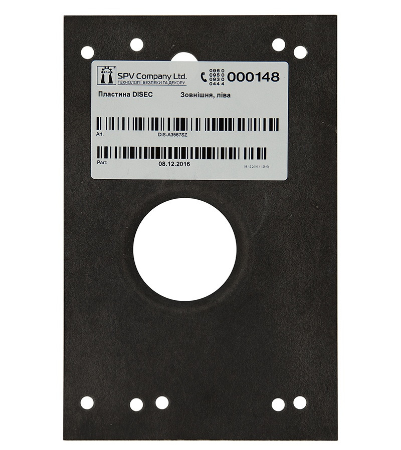 Захисна марганцевистої пластина DiSec лівостороння Бронепластина – це захисний загартований лист сталі завтовшки 2 мм, що встановлюється між замком і зовнішнім листом металу. Призначена для захисту корпусу замка Mottura 99.668.G01. Встановлюється із захисним протектором DISEK моделі RB42. – товщина 2 мм – матеріал – марганцева сталь Вона чудово захищає від висвердлювання. Спосіб мантажу: 1) Прикрутити стяжними гвинтами. 2) Приварити до полотна дверей. Компанія Disec («Дісек», Італія), заснована 2000 року в Італії в м. Конельяно. Основний напрямок діяльності – розробка оригінальних засобів безпеки (захистів) для замків і циліндрів. Конструктори і технологи компанії постійно перебувають у пошуку свіжих ідей, створюючи нові моделі систем захисту практично щомісяця. Виробнича частина оснащена найсучаснішим обладнанням і дозволяє втілювати в життя більшість найсміливіших конструкторських ідей. Всі зусилля співробітників присвячені благородній справі по забезпеченню спокою і впевненості користувачів замків в недоторканності майна.