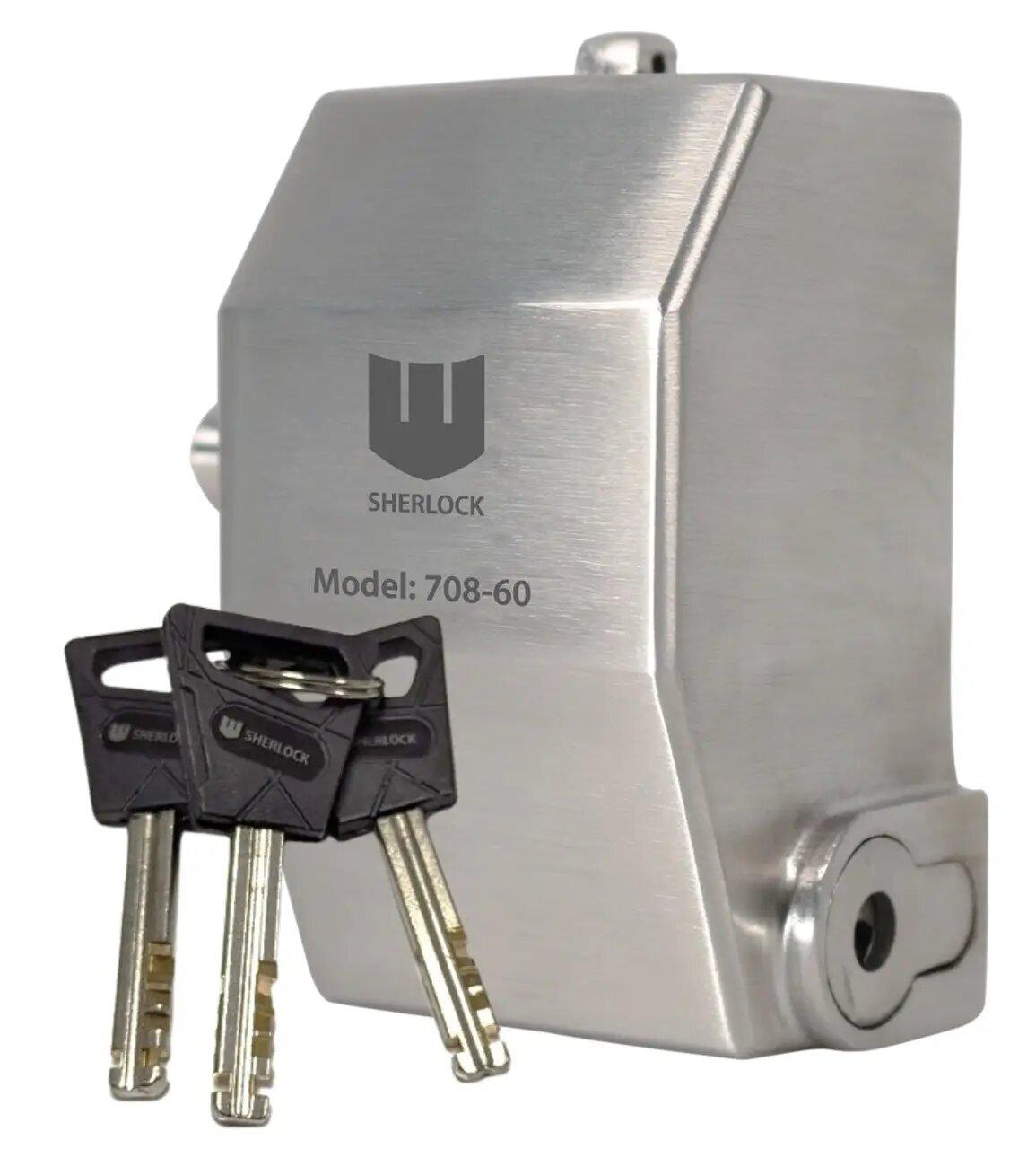 Замок навісний закритий Шерлок 708-50 3 ключі Шерлок 708-50 — навісний замок із нержавіючої сталі для використання в вуличних умовах оптимально підійде для замикання складів, гаражів та інших промислових об’єктів. У комплекті із замком три латунні ключа з двостороннім нарізуванням. Штир у замку також виготовлений із нержавіючої сталі та надійно зафіксований. У верхній частині замку є вушко для фіксації. Основна перевага цього замка типу Краб у тому, що його неможливо збити або спилити вушка. ТЕХНІЧНІ ХАРАКТЕРИСТИКИ: Корпус із нержавіючої сталі. Реверсивні ключі (можна вставляти будь-якою стороною). Захист від свердління, виривання та збивання. Спосіб монтажу — навісний. Надійна робота в умовах обмерзання. Висота замку — 48 мм. Діаметр ригеля – 12 мм. Вихід ригеля — 40 мм. Виробник дверної фурнітури Шерлок – команда професіоналів у замовому бізнесі, спеціалізується на рнованні защіпної продукції з 1994 гочодом. Вся продукція сертифікована, із заводською гарантією. Основний принцип роботи компанії — це якісний продукт за найкращою ціною. Дверна фурнітура з неіржавкої сталі, з високоякісним стійким до подряпин покриттям, зручним кріпленням у комплекті та широким асортиментом для будь-яких завдань.