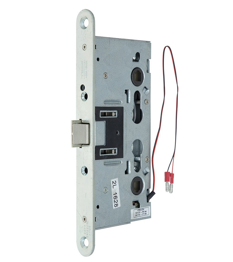 Замок електромеханічний TESA CF6SNPTRSR9ZCE врізний TESA серії CF60 моделі CF6SNPTRSR9ZCE – універсальний електромеханічний соленоїдний замок з мікроперемикачем для дистанційного керування електричним імпульсом з обох сторін. Призначений для екстреного відкривання або блокування спеціальних вогнетривких дверних конструкцій у всіх без винятку громадських, виробничих, навчальних, готельних, медичних будівлях, лікарнях, спорудах комерційного призначення в таких точках аварійного проходу масової кількості людей, як коридори, технічні проходи через приміщення, службові чи технічні виходи на кожному поверсі у відповідності з вимогами пожежної безпеки на випадок виникнення пожежі або надзвичайної ситуації. Замок універсальний (лівий/правий) для спеціальних металевих вогнетривких конструкцій (згідно EN 1634-1) товщиною до 140 мм, які відкриваються назовні або всередину приміщення, з лицьового (торцевий) планкою. BackSet – 65 мм, міжосьова відстань – 72мм. Спільне використання замків у спеціальних дверних вогнетривких конструкціях створює надійну перепону на шляху вогню й диму, не даючи їм поширюватися на поруч розташовані приміщення, водночас спрямовуючи й забезпечуючи панічну евакуацію людей за нормативно мінімально встановлений час через спеціальні евакуаційні протипожежні виходи, обладнані замком TESA серії CF60 моделі CF6STRSR9ZCE вже з панік-функцією. Перехід у вимкнений стан замка керується електричним імпульсом – під час його подавання активується внутрішній механізм замка, даючи змогу дистанційно електрично розблокувати замок і відчинити двері натисненням на поворотну ручку з будь-якої зі сторін приміщення; коли електричний сигнал зникає – замок автоматично блокує доступ на відчинення дверей з обох боків; вбудований мікроперемикач положення замка забезпечує можливість виведення звукового та/або візуалізованого сповіщення про положення дверей. КОМПЛЕКТАЦІЯ Корпус замку, зворотна планка, монтажний комплект з елементами кріплення, опис і схема. Компанія TESA була заснована ще в 1941 році в місті Ескоріаса (Іспанія). На сьогоднішній день продукція цієї торгової марки успішно реалізується в багатьох країнах світу, пропонуючи рішення в сфері обладнання евакуаційних та аварійних виходів, які дозволяють безпечно і зручно залишити приміщення при виникненні паніки в разі надзвичайних ситуацій і аварій. Наразі компанія є одним із підрозділів великого міжнародного холдингу ASSA ABLOY – світового лідера у виробництві дверних замкових рішень. TES-CF6SNPTRSR9ZCE