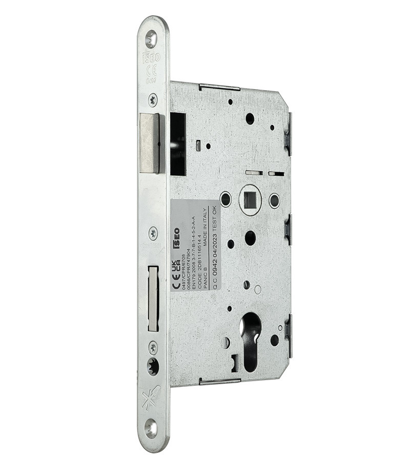 Врезной замок антипаника ISEO 2DB1116514.4 1 правый ISEO 2DB1116514.4 1 – замок врезной с открыванием наружу, PANIC FUNCTION B предназначен для установки в одностворчатую дверь эвакуационных выходов вместе с устройствами антипаники врезного типа, например TESA 1970 и QUICK1E или подобных моделей других производителей. ТЕХНИЧЕСКИЕ ХАРАКТЕРИСТИКИ Тип антипаники – В. Бексет – 65 мм. Межосевое расстояние – 72 мм. Шток – 9 мм. Язычок из закаленной стали для левой двери. КОМПЛЕКТАЦИЯ Замок. Винт для крепления цилиндра. Замок сертифицирован в Европе по EN 1125 (действующей в Украине по ДСТУ EN 1125:2014 Строительная фурнитура. Устройства выхода паники для использования на путях эвакуации, приводимых в действие горизонтальной штангой. Требования и методы испытаний (EN 1125:2008, IDT) и EN 12209 (действующей в Украине) ДСТУ EN 12209:2014 Строительная фурнитура – Замки и задвижки – Механические замки, задвижки и замковые пластины. Требования и испытания (EN 12209:2003, EN 12209:2003/АС:2005, IDT). Компания ISEO была основана в 1969 году и сегодня зарекомендовала себя в качестве мирового лидера среди производителей строительной индустрии, оборудовании и безопасности. Продукты Iseo отличаются высоким качеством, надежностью и высоким классом безопасности. ISE-2DB11165144