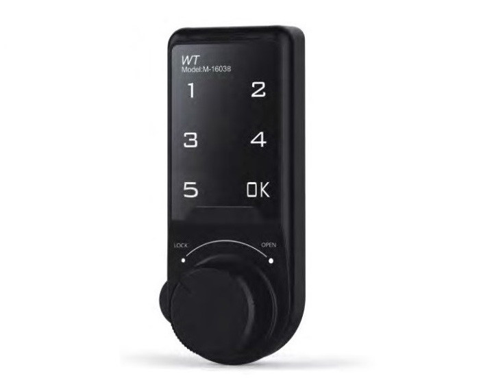 Замок кодовий бездротовий Koval M-1603BK-30 Koval M-1603BK-30 — електронний замок для меблів і камер зберігання з функцією запам’ятовування до 1 млн паролів. Підходить для використання на металевих дверях і дверях із фанери. Особливості меблевого замка Koval M-1603BK-30: Елегантний дизайн корпусу. Стильна сенсорна панель забезпечує зручність користування. Підходить для архівних шаф і камер зберігання. МОЖУ складати 4-15 цифр, пристрій може зберігати мільйон паролів. Шифрування встановлюється й змінюється користувачем, автоматично зберігається у вимкненому стані замка. Елемент живлення розрахований на 3000 відкривань, легко витягується. Передбачене автоматичне вимкнення живлення за занадто низького заряду елемента живлення. У разі неправильного набору пароля 4 рази автоматично активується тривожний звуковий супровід. Є можливість роботи в громадському та приватному режимі за допомогою перемикача. Передбачений USB-роз’єм для екстреного заряджання замка від мобільного блока живлення. Може бути поставлений декодер. ТЕХНІЧНІ ХАРАКТЕРИСТИКИ: Матеріал: пластик. Висота по різі, мм: 30. Кут повороту ригеля: 90 °. Елемент живлення: Cr2032, на 3 В. Колір корпусу: чорний. Матеріал вставки: цинковий сплав.