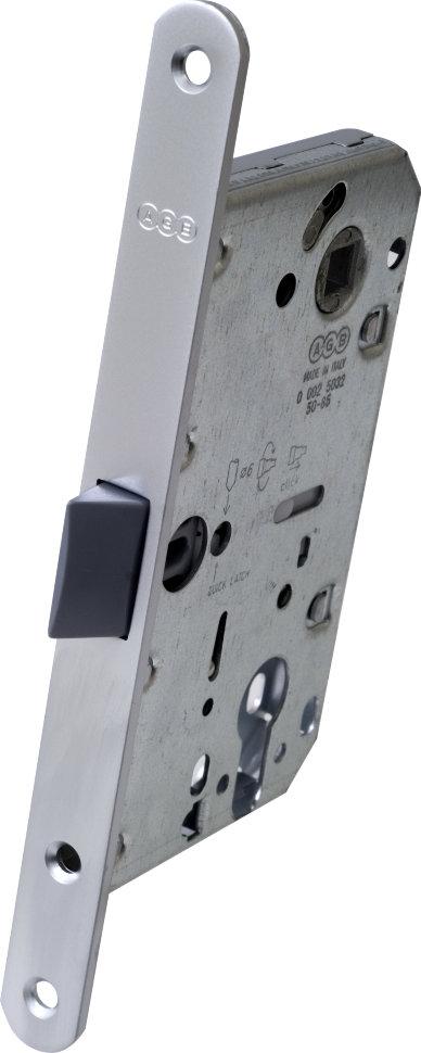 Замок міжкімнатний AGB MEDIANA EVOLUTION під циліндр B01103.50.34 матовий хром Технічні характеристики: Лицьова планка: 18 мм; Дорнмасс: 50 мм; Міжосьова відстань: 85 мм; Матеріал: сталь. Головна перевага замків Mediana Evolution – це безшумність. Поліамідна засувка замка Mediana Evolution забезпечує максимальну міцність і надзвичайну безшумність під час удару об запірну планку. Так само, варто відзначити швидку систему кріплення засувки QUICK LATCH. Вистачить кількох секунд, щоб витягти засувку, повернути в потрібний бік з урахуванням напрямку відчинення дверей і знову вставити в гніздо, закріпивши клацанням. QUICK LATCH – це унікальна система з самостійним напрямним ковзанням засувки. Застосування засувки-ригеля скорочує обсяг робіт на дверній коробці, покращуючи зовнішній вигляд і полегшуючи монтаж. Розмах повороту ручки під час відкривання/закривання становить 30°. Навіть коли засувка заблокована ключем, ручка обертається вільно, унеможливлюючи випадкове ламання замка. AGB – це італійська фірма, що спеціалізується на виготовленні замикаючих механізмів для вікон і дверей та жалюзі. Найбільш високоякісні рішення замикаючих механізмів для внутрішніх та зовнішніх дверей і вікон пропонуються компанією вже більше шістдесяти років.