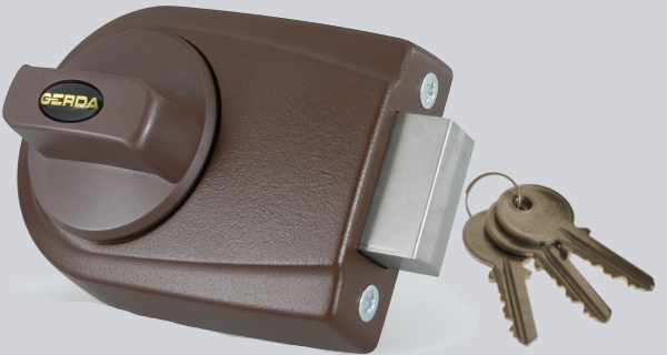 Замок накладний Gerda ZG100 коричневий Замки Gerda ZG 100, ZG 200 – це серія накладних замків з корпусом і запірною планкою замку виконаними з ЦАМА методом лиття під тиском. Завдяки використанню сучасного дизайну і високої якості лакофарбового покриття, ці замки виглядають виключно естетично і елегантно. ТЕХНІЧНІ ХАРАКТЕРИСТИКИ: найвища міцність – більше 200 000 циклів висока корозійна стійкість проста установка можливість установки на відстані 50 або 60 мм від торця дверей завдяки спеціальним прокладкам дозволяє застосовувати його у всіх типах дверей оснащені міцними циліндрами: RIM E1 – ZG 100 оснащений жорсткою ланцюжком (обмежувач відкривання) кріпильні елементи корпусу замку і поворотної частини замку є стандартними комплектуючими елементами замку Накладний додатковий замок Gerda ZG 100. Корпус виготовлений з цинко-алюмінієвого сплаву. Рекомендується для дверей масою до 100 кг і максимальною товщиною 65 мм Надійність і простота механізму дозволяє використовувати Gerda ZG 100 в різних установах, з великим трафіком людей (тест: 200 000 циклів замикання). Доступний і ергономічний. Чудово підходить для заміни старих замків. Тип ключа англійський; Додатковий; Накладний; Бэксет – 50, 60 мм; Реверсивний (правий, лівий) Кількість ключів в комплекті: 3; Кількість ригелів 1; Вихід ригелів 36 мм.; Діаметр ригелів 25х12 мм.; Замикання на 4 півоберти. Рекомендована товщина дверей на яку встановлюється замок до 60 мм. КОМПЛЕКТАЦІЯ: – корпус замку – 3 ключа – відповідна планка – паспорт