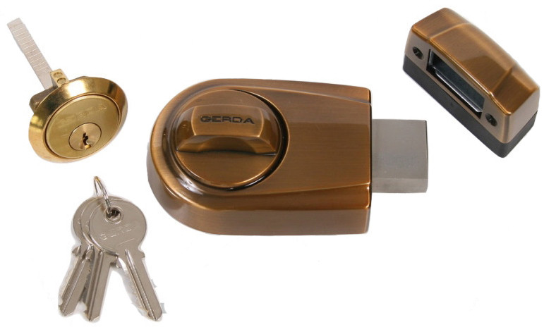 Замок накладний Gerda ZG100S антична латунь Замки Gerda ZG 100, ZG 200 –це серія накладних замків з корпусом і запірною планкою замку виконаними з ЦАМА методом лиття під тиском. Завдяки використанню сучасного дизайну і високої якості лакофарбового покриття, це замки виглядають виключно естетично і елегантно. ТЕХНІЧНІ ХАРАКТЕРИСТИКИ: найвища міцність – більше 200 000 циклів висока корозійна стійкість проста установка можливість установки на відстані 50 або 60 мм від торця дверей завдяки спеціальним прокладкам дозволяє застосовувати його у всіх типах дверей оснащені міцними циліндрами: RIM E1 – ZG 100 оснащений жорстким ланцюжком (обмежувач відкривання) кріпильні елементи корпусу замку і поворотної частини замку є стандартними комплектуючими елементами замку Накладний додатковий замок Gerda ZG 100. Корпус виготовлений із цинко-алюмінієвого сплаву. Рекомендується для дверей масою до 100 кг та максимальною товщиною 65 мм. Надійність і простота механізму дає змогу використовувати Gerda ZG 100 у різних установах, з великим трафіком людей (тест: 200 000 циклів замикання). Доступний та ергономічний. Чудово підходить для заміни старих замків. Тип ключа англійський; Додатковий; Накладний; Бексет – 50, 60 мм; Реверсивний (правий, лівий) Кількість ключів у комплекті: 3; Кількість ригелів: 1; Вихід ригелів 36 мм; Діаметр ригелів 25х12 мм; Замикання на 4 підлозі обертів. Рекомендована товщина дверей на яку встановлюється замок до 60 мм. КОМПЛЕКТАЦІЯ: – корпус замку – 3 ключа – відповідна планка – паспорт Компанія GERDA (Герда) з’явилася в 1987 році, коли двом хорошим друзям – німцеві і поляку прийшла в голову ідея організувати підприємство з виробництва замкових пристроїв і систем безпеки найвищої якості і рівня захисту. Назву було визначено особистими уподобаннями, а обраний курс на завоювання вимогливого європейського ринку та на відповідність всім найвищим стандартам і вимогам щодо забезпечення самої надійної безпеки.