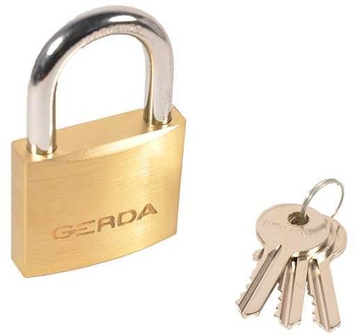Замок навісний GERDA KMZ3010A S-30 Скоби та стержні стандартних навісних замків Gerda виготовлені з загартованої сталі. Використання монолітного корпусу з литої бронзи і високоміцних матеріалів для всіх замикаючих і кріпильних елементів значно підвищує стійкість замку, захищаючи його від спроб висвердлювання і розкриття. Використання латунного сплаву дозволяє застосовувати замок у всіх погодних умовах. В комплекті до цього замку додається три ключа.