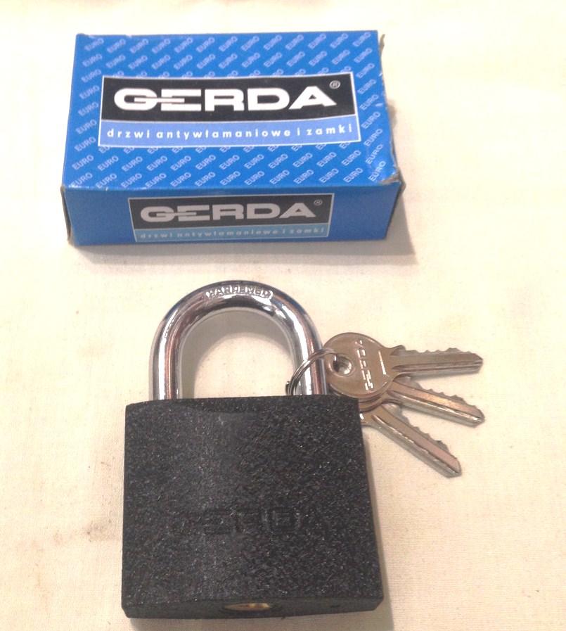 GERDA KZZS50 Скоби та стержні стандартних навісних замків Gerda виготовлені з загартованої сталі. Використання монолітного корпусу з чавуну і високоміцних матеріалів для всіх замикаючих і кріпильних елементів значно підвищує стійкість замку, захищаючи його від спроб висвердлювання і розкриття. Використання чавуну дозволяє застосовувати замок у всіх погодних умовах. В комплекті до цього замку додається три ключа.