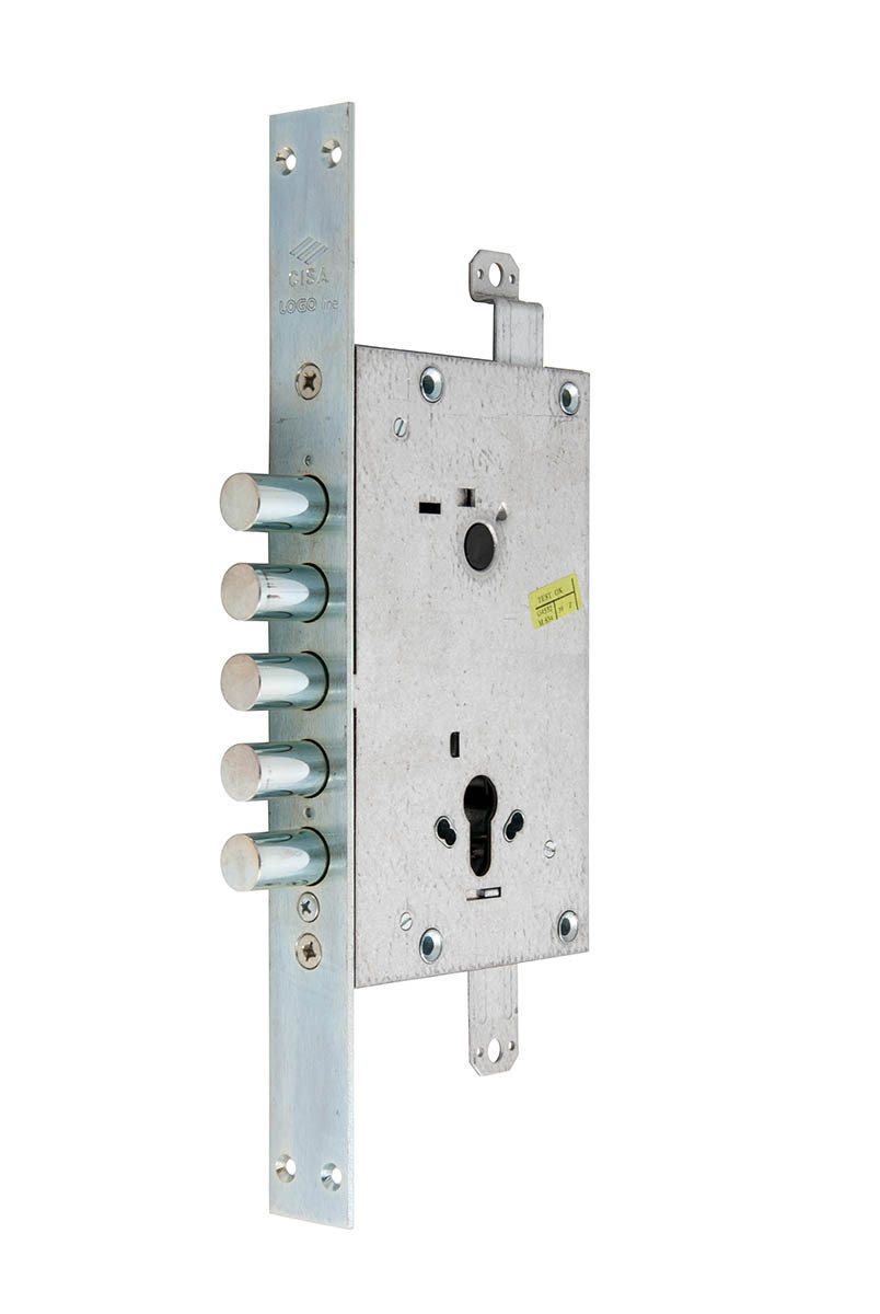 Замок Cisa 56525 оснащений системою Revolution system Пропонуємо для перегляду відео з прикладом м’якої і беззвучної роботи замку Італійського виробництва Cisa 56.525 Унікальність цього замку полягає в надзвичайній легкості повороту ключа за рахунок застосованого в замку спеціального шестерного редуктора і додаткового блокування замка при спробі відкриття замку Cisa 56.525 Revolution Pro. Останнім часом у нашій державі почастішали квартирні крадіжки зі зломом вхідних дверей. Більшість зломів відбувається вандальним способом, шляхом висвердлювання механізму замка. Компанія Cisa настійно рекомендує, при покупці даного замку придбати *Дані типи замків надходять на склади в загальній коробці і надходять у продаж без коробки виробника. • Корпус з оцинкованої сталі; • 5 нікельованих ригелів діаметром 18 мм з вильотом 38 мм; • BeckSet 67.5 мм • Вага: 2,65 кг Комплектація: – Корпус замку – Гвинт для монтажу циліндра Повністю взаємозамінний з замку Італійського виробника Cisa : – – –
