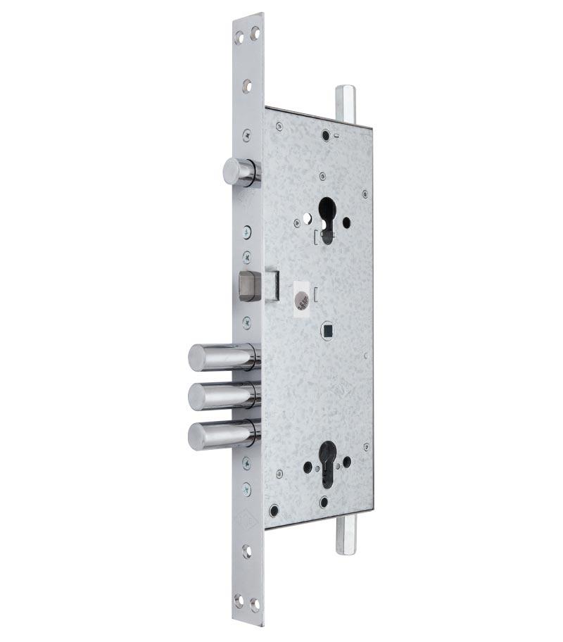 Замок врізний MUL-T-LOCK 415G Основний двоциліндровий замок 3-спрямованого замикання MUL-T-LOCK 415G. Патентований шестерний механізм управління ригелями. Може бути встановлений на двері висотою від 1950 до 2120 мм Технічні характеристики: Виробник – Ізраїль Бренд продукту: MUL-T-LOCK Модель замку: 415G Міжосьова відстань – 85 мм. BackSet: 63 мм Вихід ригелів: 41,5 мм Реверсивна заскочка з нержавіючої сталі Комплектація: корпус замку без упаковки. Додаткові механізми, тяги, протектора замовляються окремо. Mul-T-Lock – це ізраїльська компанія, яка є одним з лідерів в світі замкових технологій. Створена в 1973 році й входить у групу “ASSA ABLOY”. Mul-T-Lock впевнено йде в ногу зі світовим технічним прогресом. Висока секретність личинок замків; Максимальна точність виготовлення складових частин; Можливості сервісного обслуговування:виготовлення додаткових ключів, систем 3 in 1 «Світлофор» та «VIP», об’єднання циліндрів та замків в систему «Один ключ» та «Майстер-ключ», маркування ключів; Розгалужена мережа сервісних центрів.