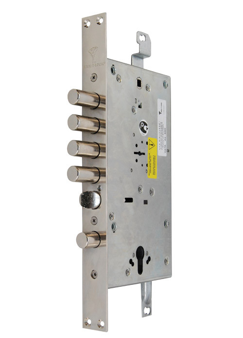 Замок врізний MUL-T-LOCK 3-WAY MATRIX+DIN Основний замок 3-спрямованого замикання MUL-T-LOCK – ESETY Matrix DFM3 з двома системами замикання: циліндровий механізм стандарту EuroDIN керує додатковим ригелем і блокує «основний» сувальдний замок; патентований шестерний сувальдний механізм приводу ригелів Matrix. Легке перекодування в разі втрати ключа. Можливість додаткового посилення замку захисними пластинами з марганцевої сталі. Технічні характеристики: Виробник – Ізраїль Бренд продукту: MUL-T-LOCK Модель замку: DFM30328M BackSet: 65 мм Міжцентрова відстань 85 мм 4 сталеві ригелі Ø 18 мм, вихід 36 мм Додатковий сталевий ригель, вихід 24 мм Реверсивна заскочка з нержавіючої сталі Вихід вертикальних тяг-20 мм Комплектація: замок 3 ключа довжиною 110 мм кодова картка *Зворотна планка, тяги не входять. Mul-T-Lock – це ізраїльська компанія, яка є одним з лідерів в світі замкових технологій. Створена в 1973 році й входить у групу “ASSA ABLOY”. Mul-T-Lock впевнено йде в ногу зі світовим технічним прогресом. Висока секретність личинок замків; Максимальна точність виготовлення складових частин; Можливості сервісного обслуговування:виготовлення додаткових ключів, систем 3 in 1 «Світлофор» та «VIP», об’єднання циліндрів та замків в систему «Один ключ» та «Майстер-ключ», маркування ключів; Розгалужена мережа сервісних центрів.