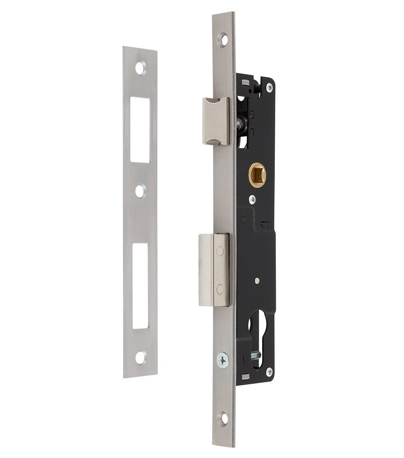 Замок врізний SANTOS DIN 726 UNIV BS 20 мм 90 мм SS 22 мм FOREND SP • Тип механізму замикання: DIN • Модель замку: 726 • Сторонность: UNIV • BackSet: BS20 мм • Міжосьова відстань: 90 мм • Ширина торцевої планки: 22 мм Основний замок SANTOS Profile Lock 726 для профільних дверей під циліндр DIN. Сумісний з фурнітурою ROSTEX для профільних дверей. Міжцентрова відстань – 90 мм. BackSet 20 мм. Глибина корпусу – 35 мм. 1 прямий ригель. Вихід ригеля – 16 мм. Реверсивна заскочка. Сторонність – універсальна (права/ ліва). Торцева планка: обробка – нержавіюча сталь, ширина – 22 мм. Комплектація: замок, зворотна планка, пластиковий щиток чорний PZ (2 шт.) Компанія SANTOS® (Португалія) почала свою роботу на ринку механічних систем замикання в 1952 році. Замки SANTOS® (Сантос) відрізняються високою якістю і відповідають технічним стандартам всіх європейських країн. Крім того, величезна кількість різних за розмірами моделей і серій охоронних механізмів SANTOS® дозволяють підібрати замок для будь-якого типу дверей.